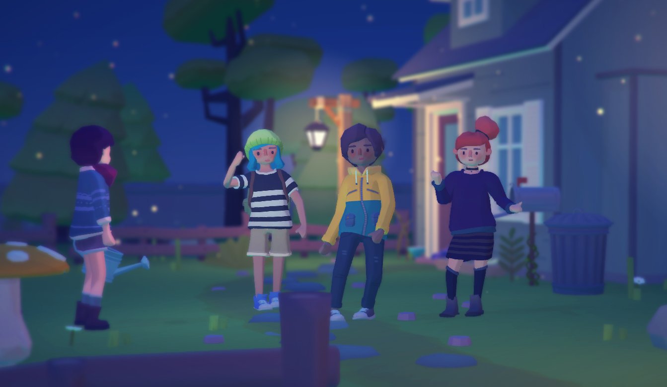 We didn't really have any cohesive environments before, but now we've got the player's home region, Badgetown. It has the player's house, farm, a town square, seed shop, some clubhouses, and a boardwalk.