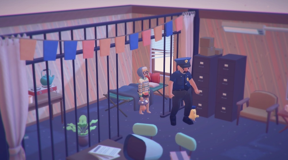 Officer Gloffum was one of the first characters we designed to block off a road in the demo, and despite there not really being many disturbances requiring a peace officer in Oob, we're keeping him. He's union after all. He's got a little office in Town Hall that has a door-less jail cell he sleeps in.