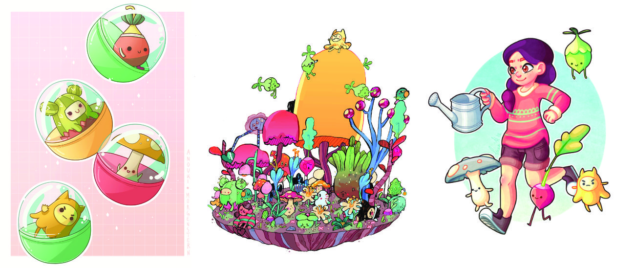 This past month, patrons have gotten to hear a new music track from the game, seen new ooblet concepts like the ones above, participated in a super secret live stream Q&A we did, got a sneak peek at all the new crafting machines and the new crafting UI, saw some dumb cat gifs of our dumb cats, and hung out in the supporters channel in our Discord.