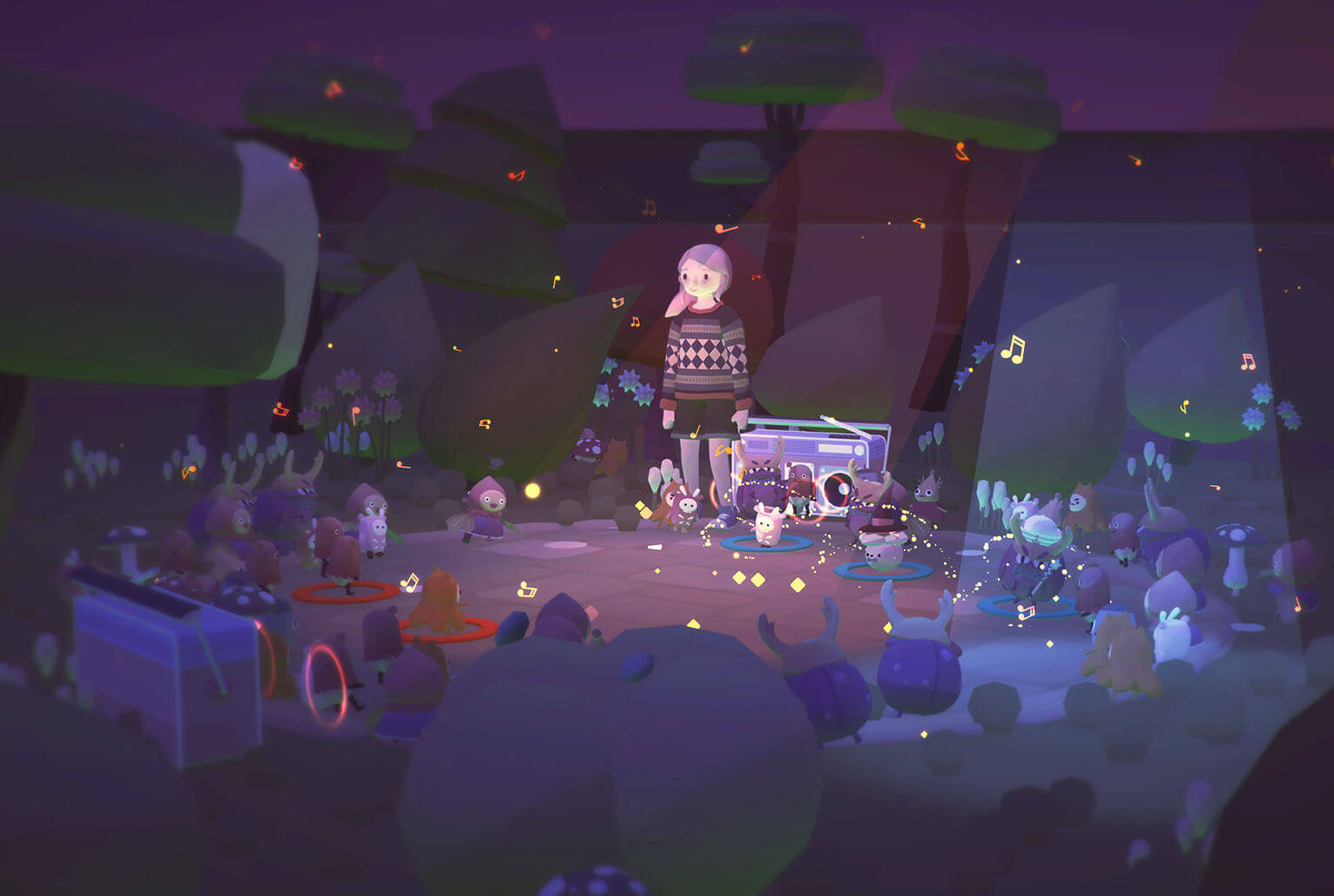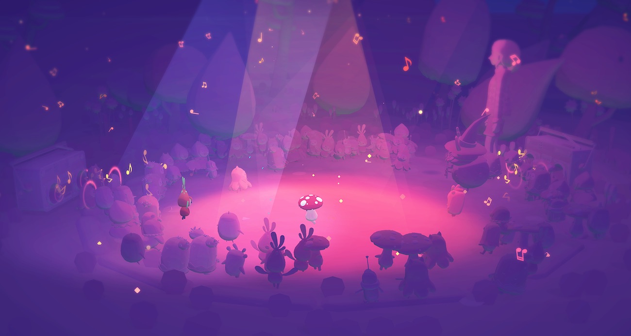 We wanted dance offs in Ooblets to feel like those kids movies where people settle disputes through sudden choreographed dances that somehow take on a weird air of social importance. Crazy lights, a boombox that appears out of thin air, an excited audience gathered round...