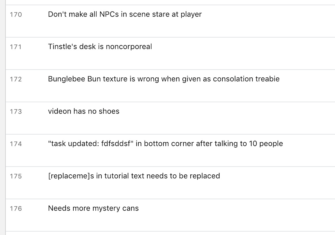Here's a little peek into what the task/bug tracker for Ooblets looks like: