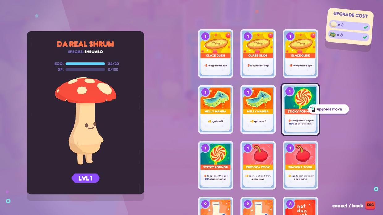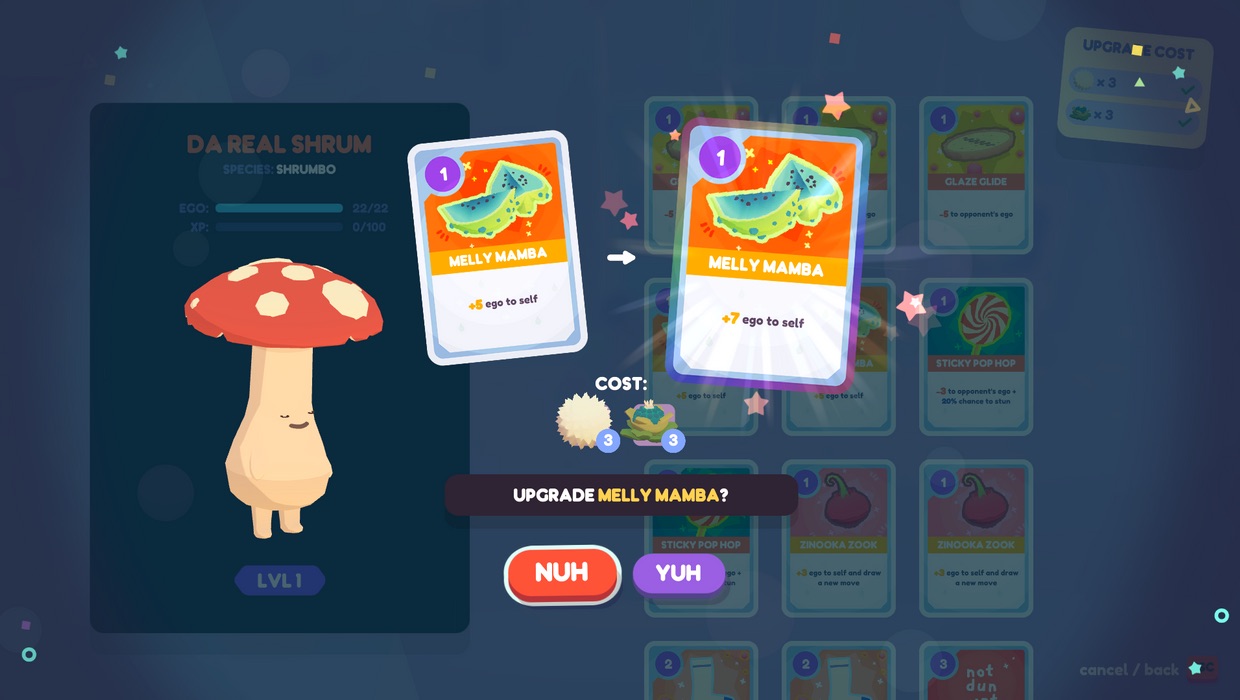 As your ooblets gain XP, they unlock more moves. But now you can feed them stuff to upgrade the moves they've already unlocked. You can only upgrade a card once and the cost increases (for that ooblet) each time you upgrade one of their moves.