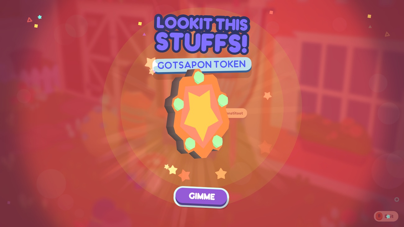 We'd struggled a lot with the idea of gotsapon (like gachapon) machines because of balancing the payments to the types of items you get. I came up with the idea that by cleaning up the town you randomly and infrequently get these lil tokens you can spend on gotsapons instead of the normal currency (gummies). Balancing issues solved!