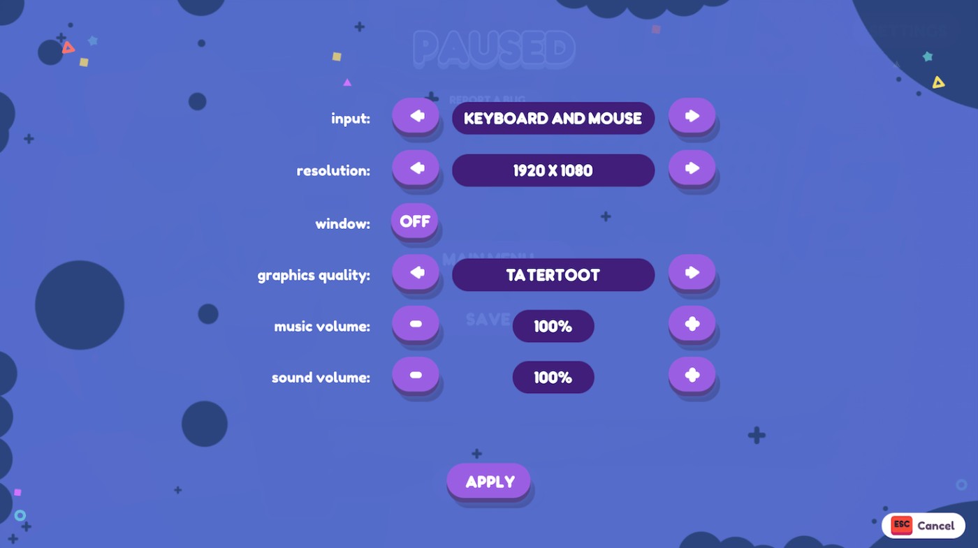 What do you people want to mess with? Graphics quality? Controller mode? Windowed mode? Volume??