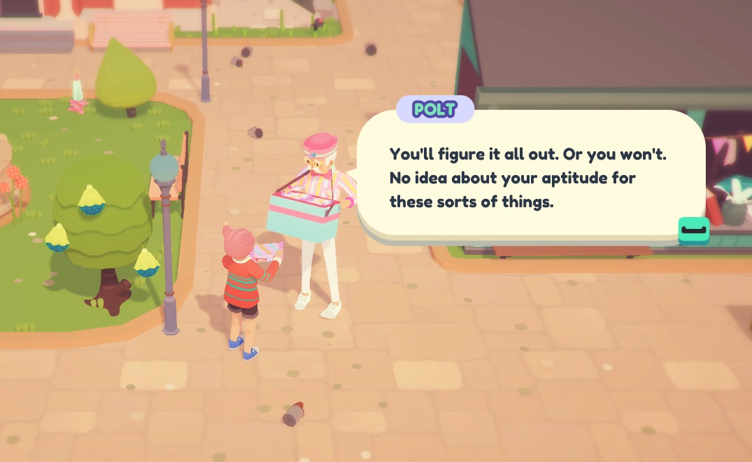 The new idea is to treat them as mid/late-game ooblet-driven farm automation sub-sections... Don't worry, it will make sense. Since it's later-game we're putting off implementation for a while so we can prioritize things that will let us release the game sooner.