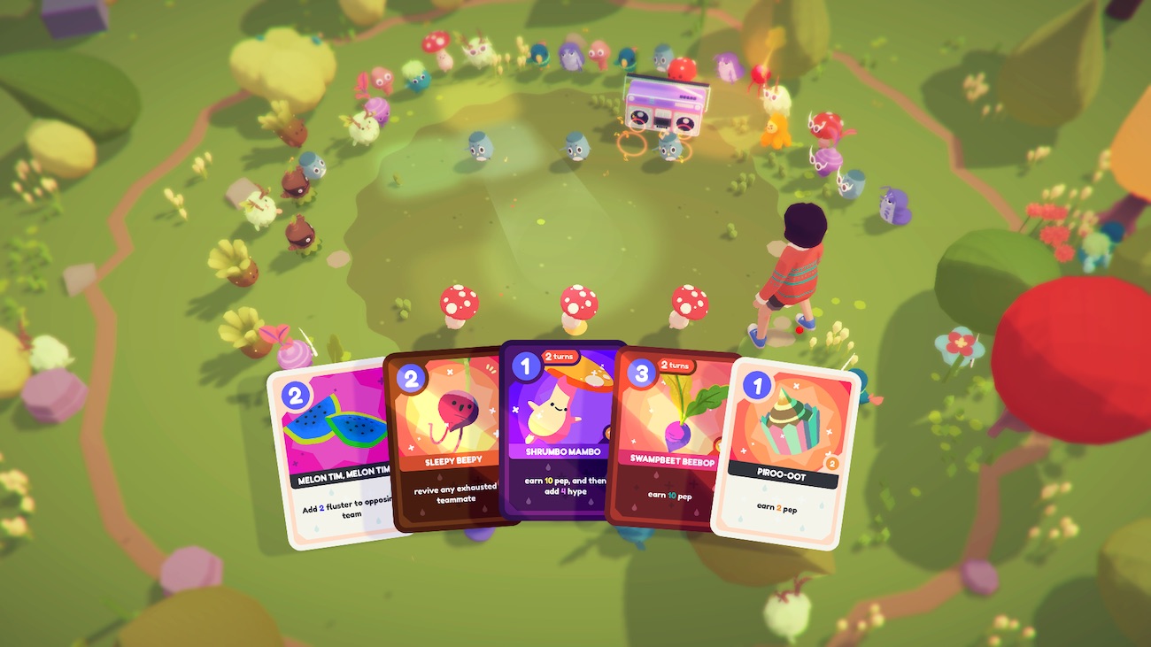 (the ooblet illustrations in the cards are by [Franxurio](https://twitter.com/franxurio)!)The new ideas we're working with are definitely feeling like the right direction but we've still got a ways to go on it. Having only a couple moves per ooblet instead of a whole deck is making all our balancing decisions a lot easier and letting us make the early introductory dances go a bit smoother, which incidentally takes us to: